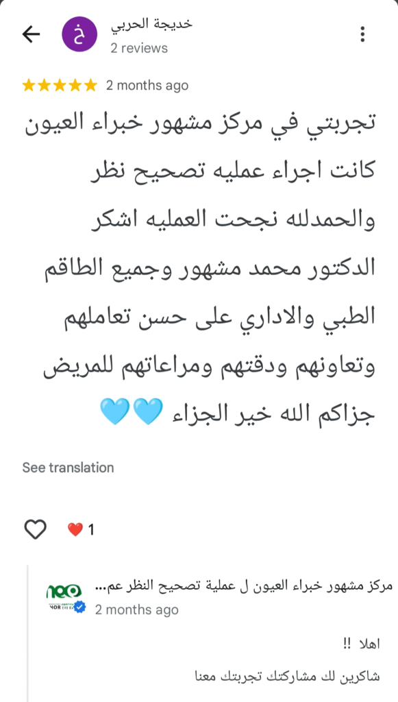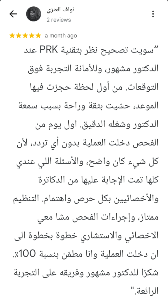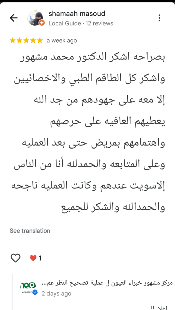 من بعض مراجعات ممن وثقوا بمركز مشهور خبراء العيون لإجراء عملياتهم من خارج المملكة وداخلها.