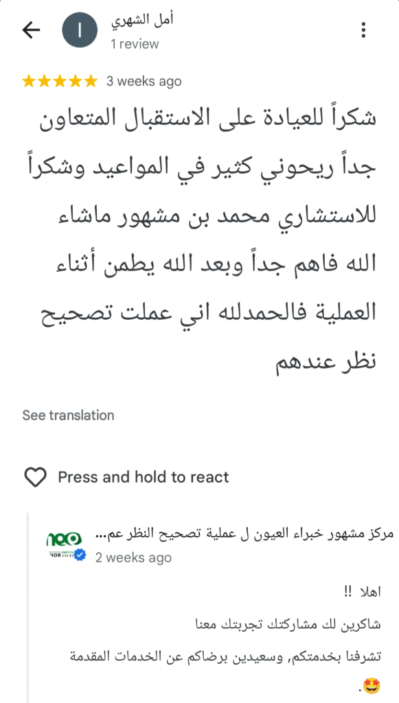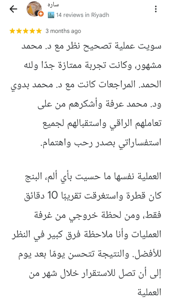 آراء عملائنا في عملية تصحيح النظر