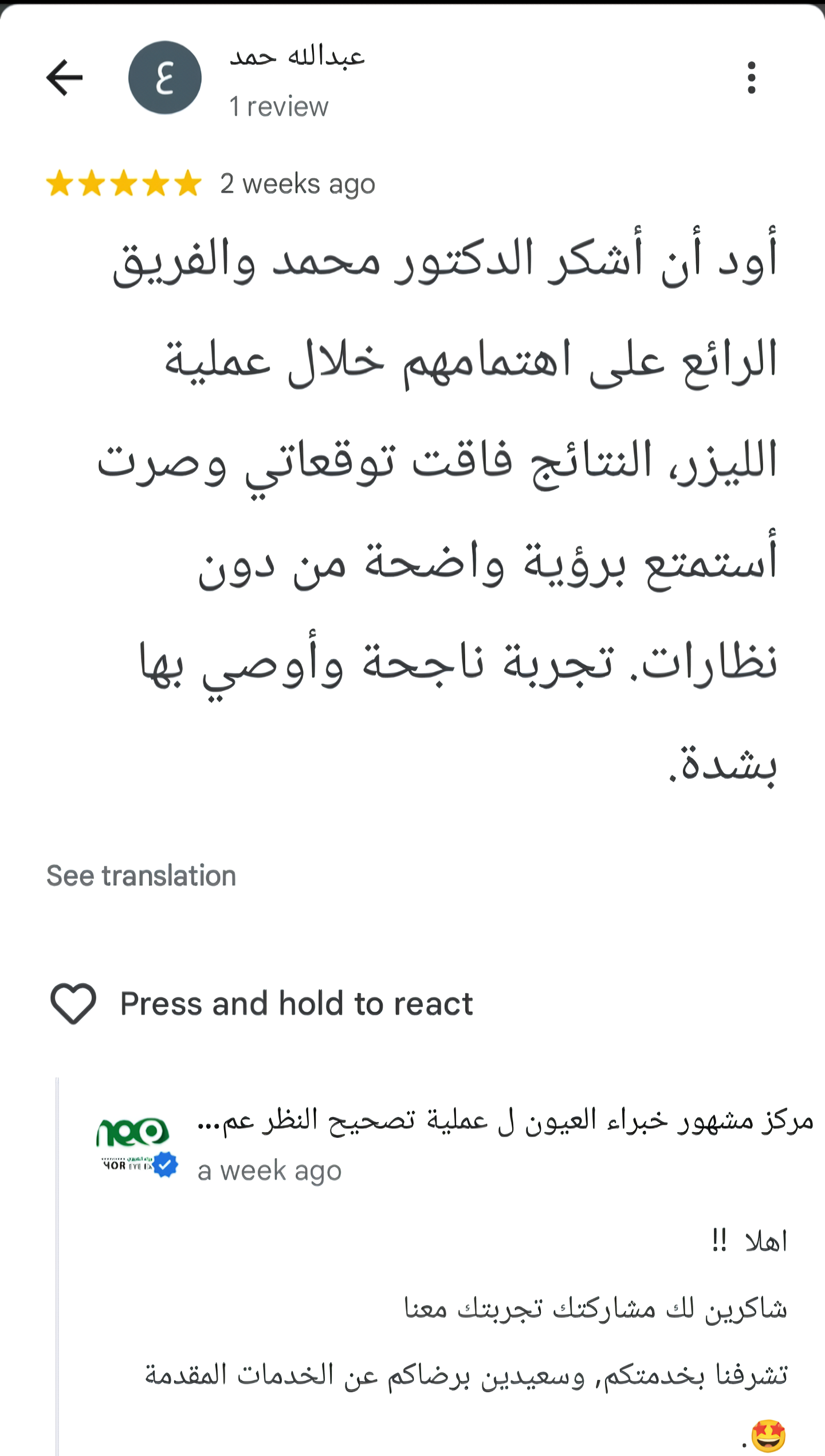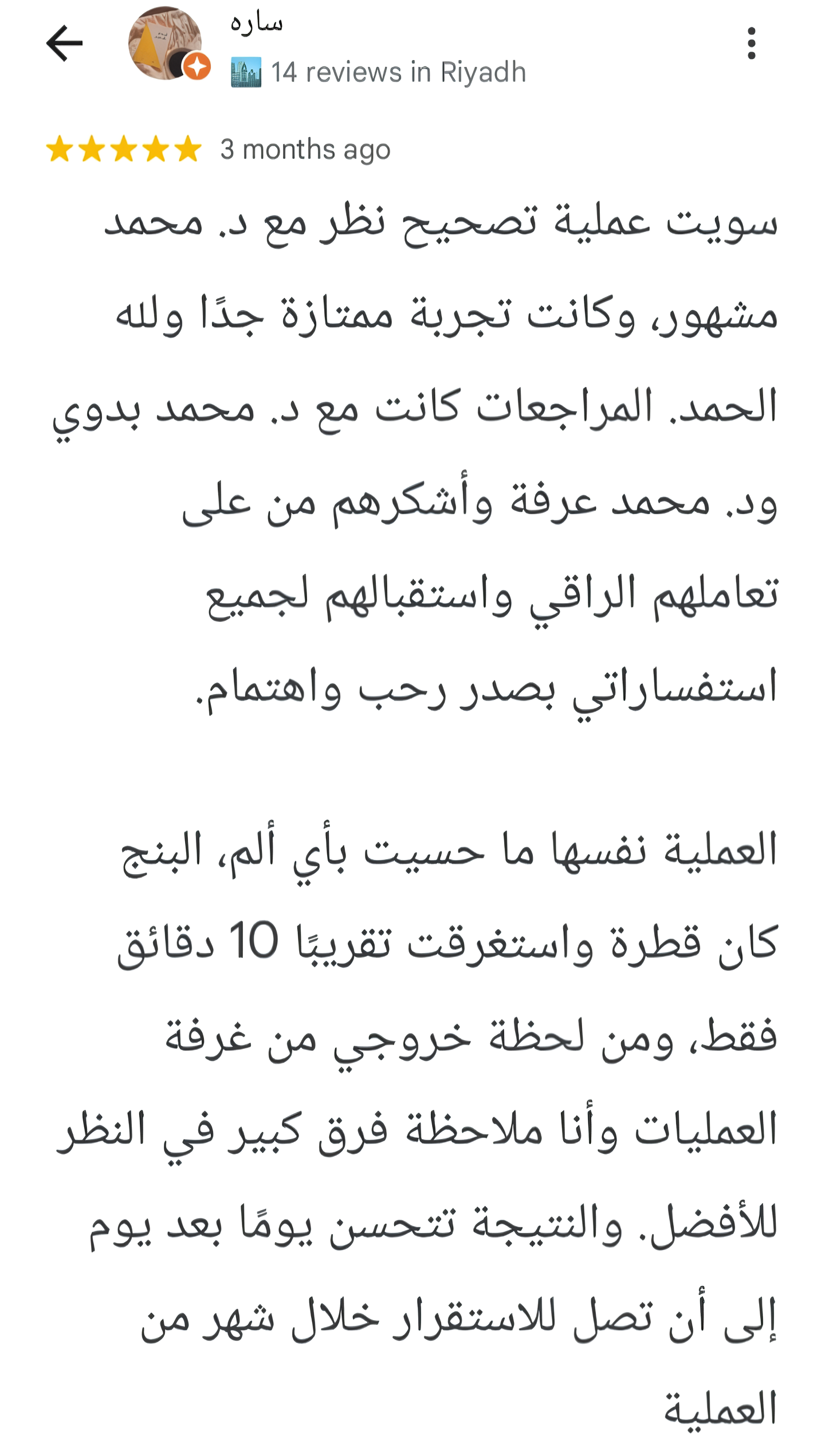 من بعض مراجعات ممن وثقوا بمركز مشهور خبراء العيون لإجراء عملياتهم من خارج المملكة وداخلها.